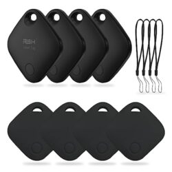 Key Finder Bluetooth Tracker for Luggage Works with Apple Find My Smart Tracker Locator for Suitcase, Bag, Backpack, Wallet, Replaceable Battery Smart tag Item Finder (4 Black Tags &