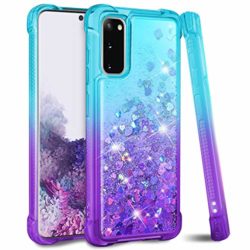 Ruky for Galaxy S20 5G Case, Glitter Liquid Gradient Quicksand Series Flexible TPU Shockproof Protective Reinforced Corners Women Girls Cover Phone Case for Samsung Galaxy S20 5G 6.2″ (Teal Purple)