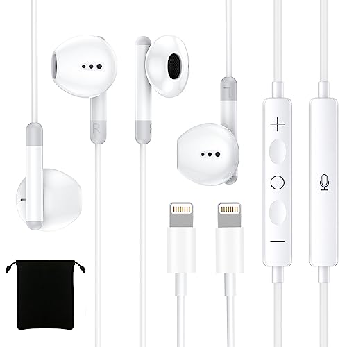 - 【Extensive Compatibility】No need for Bluetooth, just plug and play. These iPhone earbuds come with a standard Lightning connector, making them perfect for all iOS devices with a Lightning interfaces.