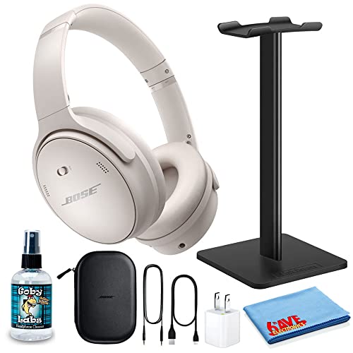 - THIS BOSE QUIETCOMFORT 45 HEADPHONES BUNDLE INCLUDES: Bose QuietComfort 45 Wireless Headphones (White Smoke) + Headphone Cleaning Solution Spray Bottle + Headphone Display Stand Holder (Black) + USB Wall Charging Adapter (2,000 mAh) + 6AVE MicroFiber Cleaning Cloth