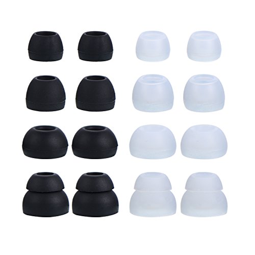 - QUANTITY: the package includes 8 pairs of silicone replacement eartips in black and clear color, each color for 4 pairs, 2 different color eartips give you multiple choices