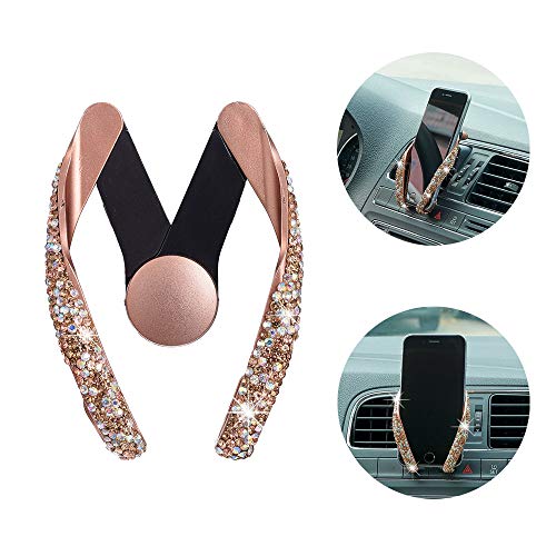 ATMOMO Gold Universal Air Vent Phone Car Mount Holder Bling Rhinestone Phone Stand Holder