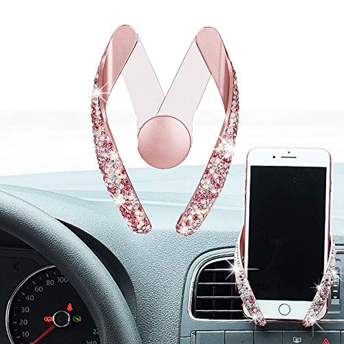 ATMOMO Pink Crystal Rhinestone Car Phone Mount Bling Air Vent Car Cell Phone Holder Adjustable Holder
