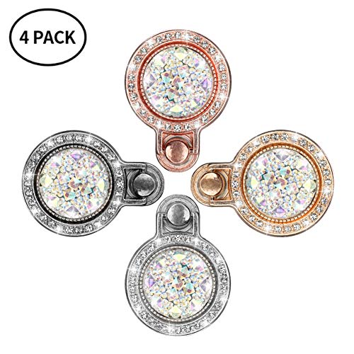 Bling Phone Ring Stand Holder, Sparkle Gemstone Cell Phone Ring Grip,Sparkling Diamond Finger Ring Kickstand for Compatible for iPhone Xs Max/XS/XR/Phones/Tablets (4 Pack,Black,Silver,Rose Gold,Gold)