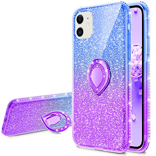 Compatible for iPhone 11 Bling Case, VEGO Ombre Glitter Case for Girls Women Fancy Shiny Fashion Sparkly Diamond Rhinestone with Kickstand Ring Holder Compatible for iPhone 11 Case (Blue Purple)