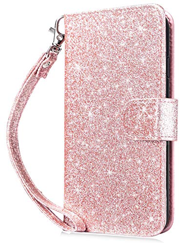 Dailylux iPhone 7 Plus Case,iPhone 8 Plus Wallet Case,Glitter PU Leather Stand Function Card Slots Cash Holder Flip Folio Bling Wallet Cover for Apple iPhone 7 Plus/8 Plus 5.5 inch Sparkle Rose Gold