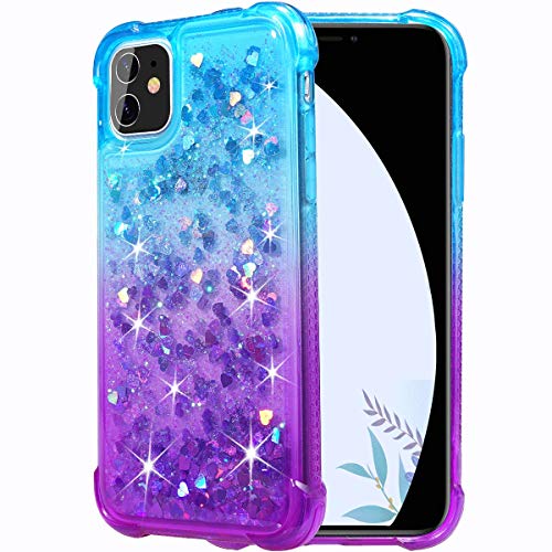 Flocute Glitter Case for iPhone 11 Glitter Case Gradient Series Bling Sparkle Floating Liquid Soft TPU Cushion Luxury Fashion Girly Women Cute Phone Case (Teal Purple)