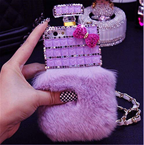 Fusicase for iPhone XS Max Perfume Case Luxury Shiny Crystal Sparkle Rhinestone Perfume Bottle Cover with Rex Rabbit Fur Shell Bling Diamond Hair Plush Case for iPhone XS Max + 1 Stand