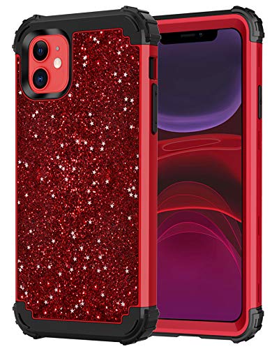 Hekodonk Compatible iPhone 11 Case Luxury Stars Sparkle Glitter Shiny Heavy Duty Shockproof Full-Body Protective High Impact Hybrid Hard Cover for Apple iPhone 11 Bling Red