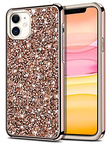 HoneyAKE Case for iPhone 11 Case Bling Rhinestone Sparkly Crystal Diamond Shockproof Handmade Dual Layer Shell Hard PC Soft Rubber Bumper Protective Cover for iPhone 11 6.1 inch Rose Gold