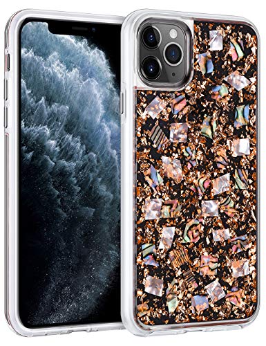 HoneyAKE Handmade Shinning Shells & Bling Rose Gold Foil Flakes Protective Case for iPhone 11 Pro Max 6.5 inches