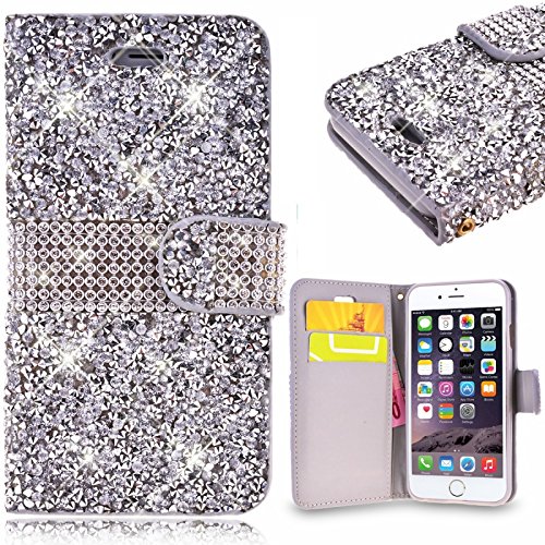 Huitao 3D Bling Glitter Diamond Leather Flip Wallet Phone Case for iPhone X 8 6 6s 7 7plus/Samsung Galaxy S7 S7 Edge S8 S8 Plus (Silver Samsung Galaxy S8 Plus)