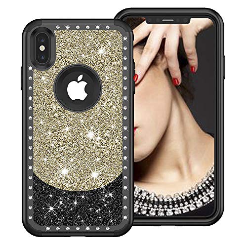 I Xs Glitter Case Compatible with Apple iPhone X/Xs Girly Bling Luxury Protective Cover Xscase 10xs Uphone Sx 5.8 Inch (Gold)