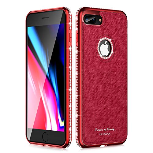 - LUXURY LEATHER BACK RHINESTONE CASE: Stunning PU leather and electroplated tpu case makes you and your phone look fashionable and perfect every day. This case will definitely receive compliments from everyone! Topped with a gorgeous red leather and electroplating finish.