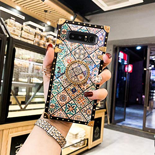 KAPADSON for Samsung Galaxy Note 9 Newest Blu -Ray Retro Shining Skin Design TPU Gold Square Corner Protective Back Case with 360 Degree Holder – Folk Style 1
