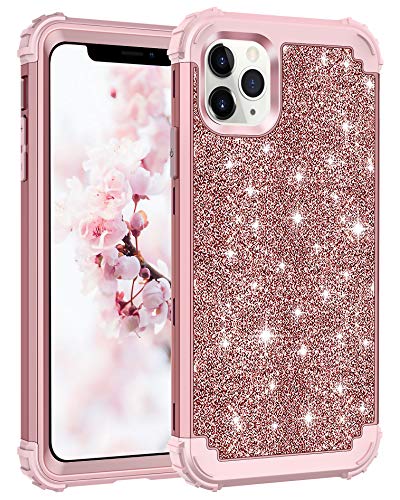 Lontect Compatible iPhone 11 Pro Max Case Glitter Sparkle Bling Heavy Duty Hybrid Sturdy Armor High Impact Shockproof Protective Cover Case for Apple iPhone 11 Pro Max 6.5 2019, Shiny Rose Gold