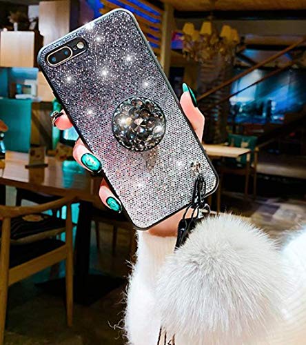 Lozeguyc iPhone XR Bling Marble Kickstand Case,iPhone XR Luxury Soft Hard Back Case Shiny Glass Shockproof Ring Stand Cover for iPhone XR 6.1 Inch-Black 03
