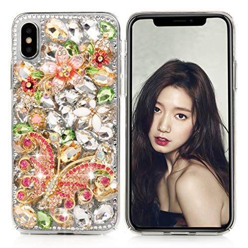 Mavis’s Diary iPhone X Case, iPhone Xs Case, Full Edge Protective Plastic Case, 3D Handmade Crystal Clear Bling Diamonds Shiny Rhinestone Hard PC Cover for iPhone X Edition – Rose Gold Butterfly