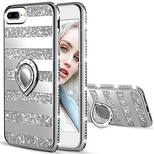 Maxdara iPhone 8 Plus Case, iPhone 7 Plus Glitter Cute Shiny Case with Bling Diamond Rhinestone Ring Stand Kickstand Ultra Thin Soft Bumper Protective Pretty Girls Women Case for iPhone 7 Plus/8 Plus
