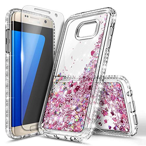 NageBee Galaxy S7 Glitter Case with Screen Protector for Girls Kids Women, Liquid Quicksand Waterfall Floating Flowing Sparkle Shiny Bling Cute Phone Case for Samsung Galaxy S7 -Rose Gold