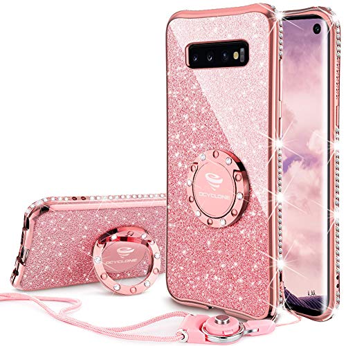 OCYCLONE Galaxy S10 Case, Glitter Cute Phone Case for Women Girls with Kickstand, Bling Diamond Rhinestone Bumper with Ring Stand Compatible with Galaxy S10 Case for Girl Women – Rose Gold [Pink]