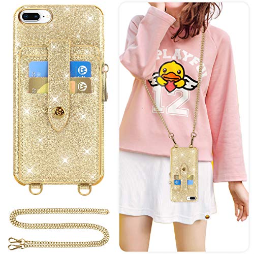 - 【2019 NEW VERSION】Bling Chain Crossbody Series Wallet case for iPhone 8 Plus/7 Plus. Card hold back case for Apple iPhone 8 Plus/7 Plus. Suitable for Girls Hang out