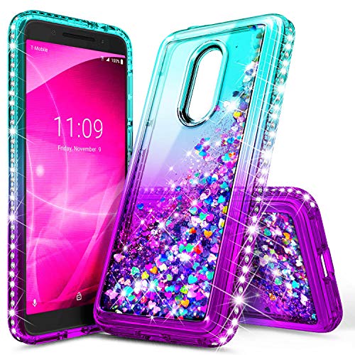 Revvl 2 Case (T-Mobile), NageBee Glitter Liquid Quicksand Waterfall Floating Flowing Sparkle Shiny Bling Diamond Shockproof Girls Cute Case for (T-Mobile) Alcatel Revvl 2 (2018) -Aqua/Purple
