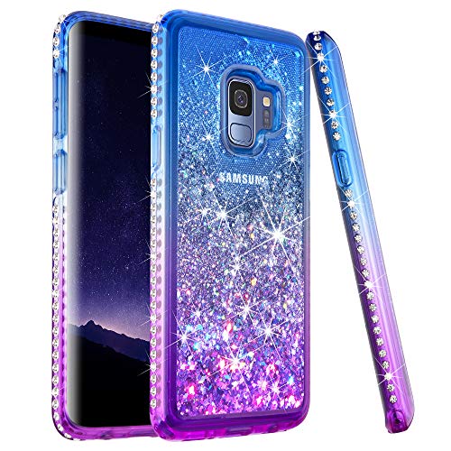 - [Gradient Quicksand Series]The most popular fashion combination! Glitter liquid floating bling design with advanced hanging dying technology would bring you a unique visual experience. The glitter liquid girls cute case will make your Galaxy S9 more attractive and fun to play with.