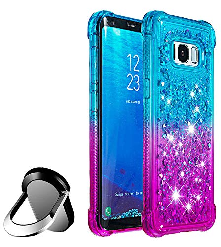 S8 Case, Glitter Case for Samsung Galaxy S8,JanCalm Gradient Bling Sparkle Cover for Girls Woman Clear TPU Bumper Cushion Reinforced Corners Protective + Finger Ring Kickstand (Sky Blue/Purple)