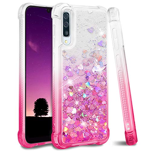 - [Beauty&Luxury Glitter Galaxy A50 Case] This glitter liquid design not only make your Galaxy A50 phone case beauty but also more interesting to play, the bling love heart sequins could flow freely inside and change its color with floating up and down, give your loved one a big smile on her face.