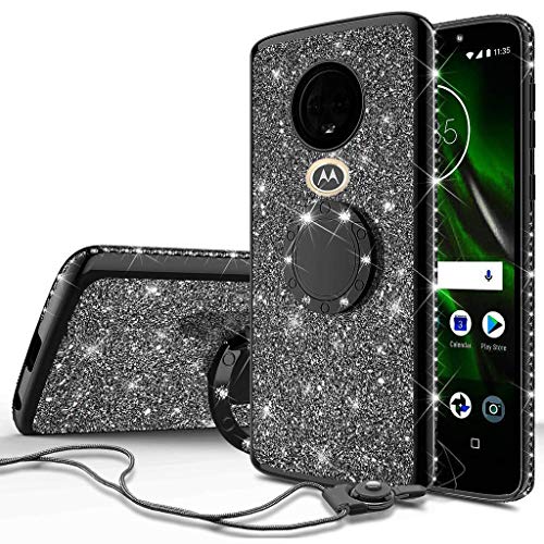 SOGA Diamond Bling Glitter Cute Phone Case with Kickstand Compatible for Motorola Moto E5 Plus Case, Motorola Moto E5 Supra Case,Rhinestone Slim Bumper with Ring Stand Lanyard Girls Women Cover Black