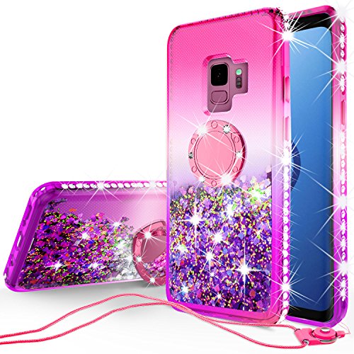 1. SOGA QuickSand Luxury Cute Design Slim Glittery Bumper with Liquid Floating Sands and Diamond embedded around the edges. 2. Stay up to Fashion and Protects your phone with the air-cushion corners that could absorb the shock bounce when you drop your phone. 3. Unique 360 Degree Embedded Magnetic Diamond Ring stand with the ability to stand as an kickstand. 4. Include: Liquid Flow Case, Diamond Ring Magnetic, and Neck Strap Lanyard an Complete Package. Compatible with Samsung Galaxy S9 Plus.