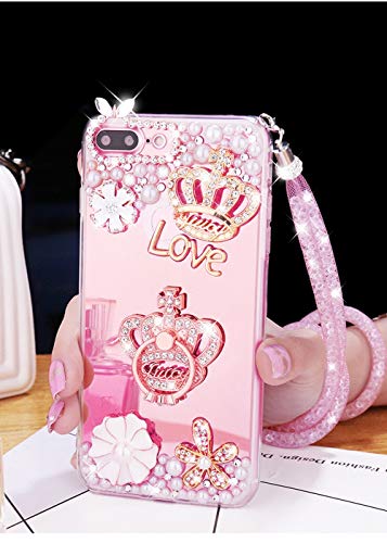 Tianyuanxuan Iphone 7/8 Plus Silicone Case Crystal Rhinestone Bling Diamonds for Girl Crown Ring Cover with Mirror Soft Shell for Iphone7/ 8 Plus-Rose Gold
