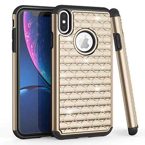 TILL for iPhone Xs Max Case, TILL(TM) Studded Rhinestone Crystal Bling Diamond Sparkly Luxury Shock Absorbing Hybrid Defender Apple iPhone Xs Max Slim Glitter Cute Case Cover for Girls Women [Gold]
