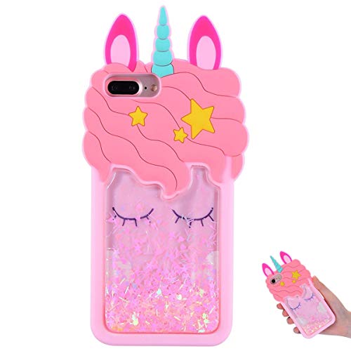 TopSZ Quicksand Unicorn Bling Case for iPhone 8 Plus/7 Plus/6 Plus 5.5″,Cute Silicone 3D Cartoon Cool Kawaii Animal Cover,Shockproof Soft Skin,Character Cases for Kids Girls Teens Guys iPhone 678Plus