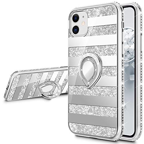 - 【Compatible with iPhone 11 Case】 Compatible with iPhone 11 case. Stripe mirror glitter case with soft inside layer, the edge with inlaid artificial rhinestone diamond, brightly color with shinning glitter elements on the back and makes your phone looks pretty and luxury.