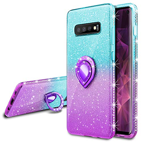 VEGO Samsung Galaxy S10 Glitter Gradient Ombre Case with Ring Holder Kickstand for Women Girls Bling Diamond Rhinestone Sparkly Bumper Fashion Shiny Cute Protective Case for Galaxy S10(Teal Purple)