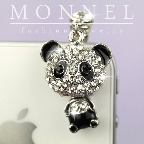 IP499-B Cute Panda Crystal Dust Proof Phone Plug Cover Charm For Cell Phone