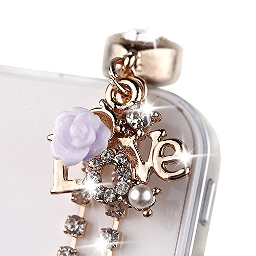 ip570b-2 Cute Crystal LOVE Purple ROSE Anti Dust Plug Cover Charm for iPhone Android ear jack 3.5mm