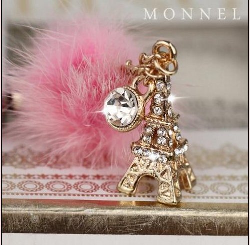 IP658-b Cute Pairs Eiffel Tower Charm Chain Universal 3.5mm Anti Dust Earphone Jack Plug Cap for Smart Phone