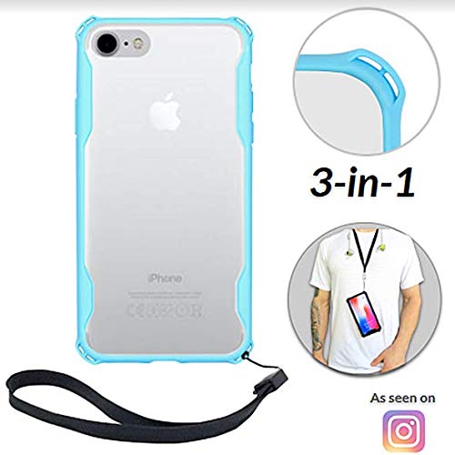 New iPhone 7 Plus & 8 Plus Clear Slim Case with Wrist Strap & Lanyard | Best Rugged TPU Bumper Case | Loop Attachments for Leash, Tether etc – iPhones: Xs X Xr Xs Max X 8 7 6 6s Plus (Light Blue)