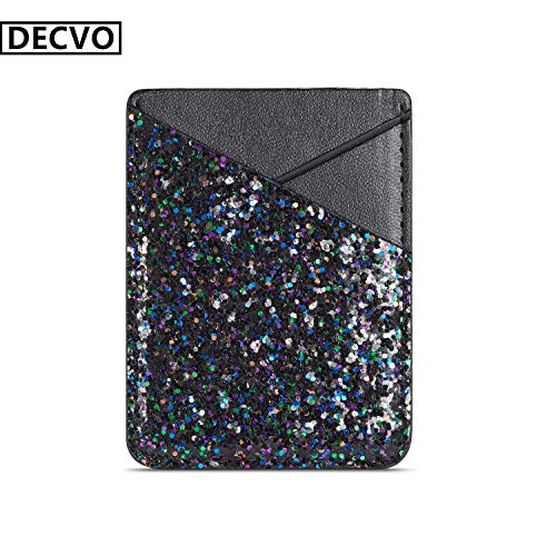 Phone Card Holder, DECVO Case-Mate PU Leather Bling Glitter Phone Card Id Cash Credit Wallet Holder Removable Adhesive Stick-on Fits iPhone Sumsung Galaxy Android Smartphones Multi Colors (Color)