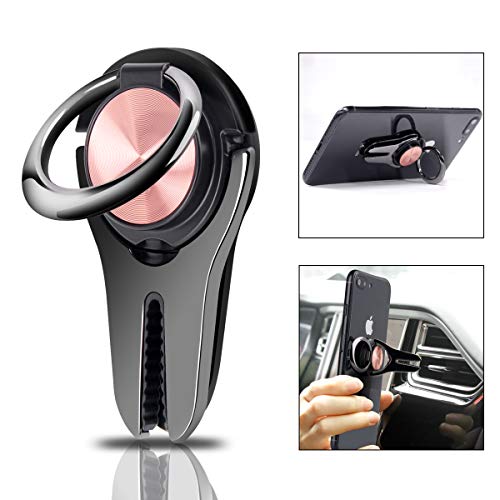 B-Land Phone Ring Holder, 2 in 1 Air Vent Car Phone Mount 360° Rotation Metal Finger Ring Grip Stand Cell Phone Holder for Car, Compatible with All Smartphones (Rose Gold)