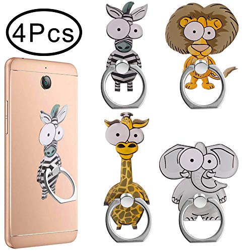 Outee 4 Pcs Cell Phone Ring Holder Cute Animal Finger Ring Grip 360 Swivel for Smartphones, Tablet (Zebra, Giraffe, Elephant, Lion)
