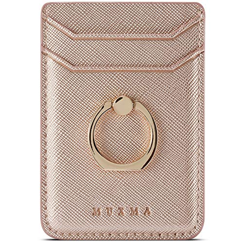 Phone Card Holder with Ring Grip for Back of Phone,Adhesive Stick-on Credit Card Wallet Pocket for iPhone,Android and Smartphones