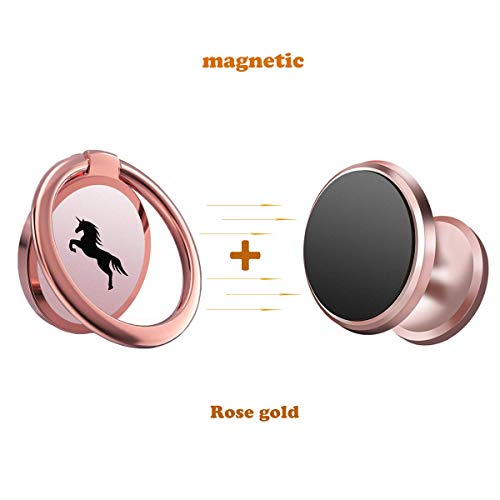 Phone Ring Holder Finger Ring Stand Latest Model 360°Rotation Metal Phone Ring Grip and Magnetic Car Phone Mount for Smartphones, Tablets and GPS 2 in1set (Rose Gold)