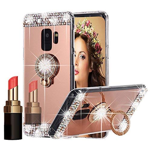 Miniko Mirror Bling Glitter Cute Case with Diamond Ring Kickstand Samsung Galaxy S9