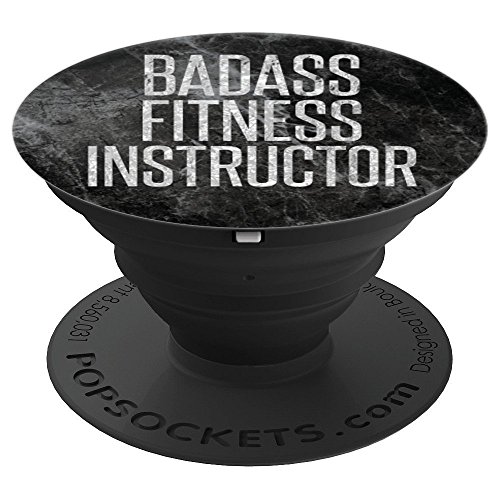 Fun glam phone accessory for woman or man who works as a fitness instructor and trainer of athletes. Perfect gift in faux silver design on faux black marble PopSockets Grip.
