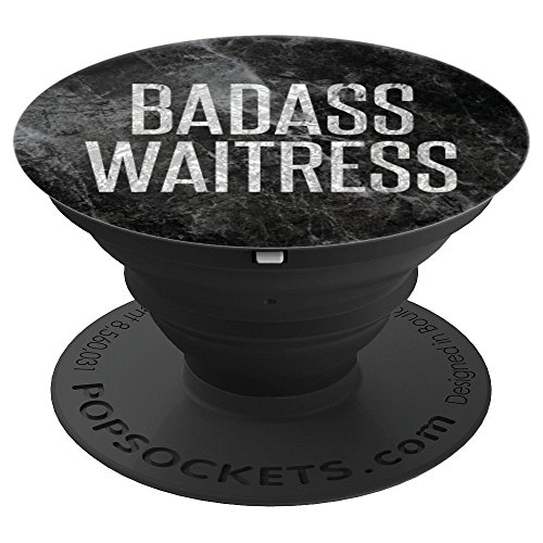 Fun glam phone accessory for woman or man who works as a waitress in a restaurant. Perfect gift in faux silver design on faux black marble PopSockets Grip.