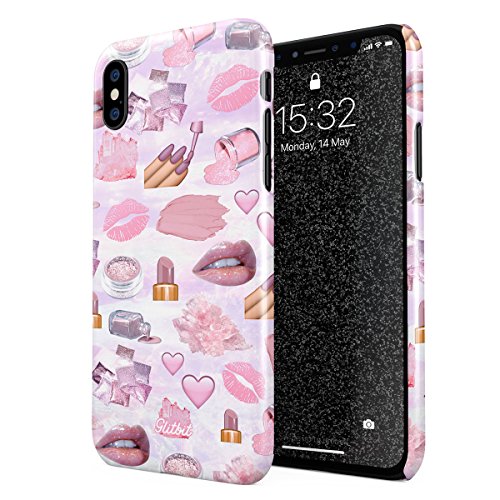 Glitbit Compatible with iPhone X, iPhone XS Case Makeup Junkie Glam Fab Girl Queen Nail Polish Art Artist Emoji Lip Lipstick Glitter Addict Thin Design Durable Hard Shell Plastic Protective Case Cover